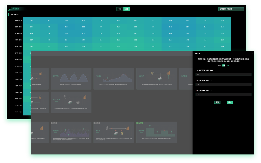 基于物联网技术,通过采集大量储能设备运行数据,构建复杂系统模型并持续训练,实现系统在正常运转时,能够较早的提供更准确、更先进的检测信息,提前预判故障,并从能耗、收益等多维度分析制定运行策略,满足不同系统运行目标。
