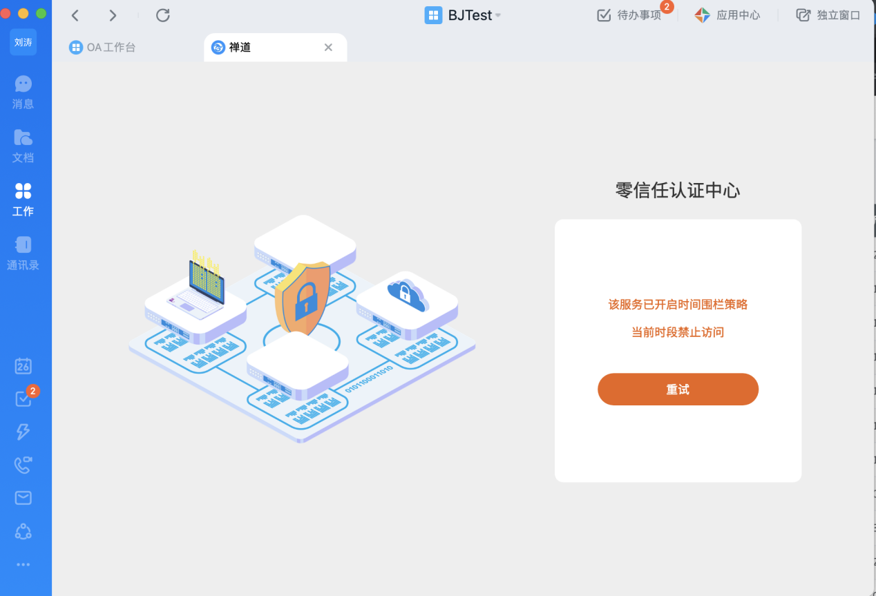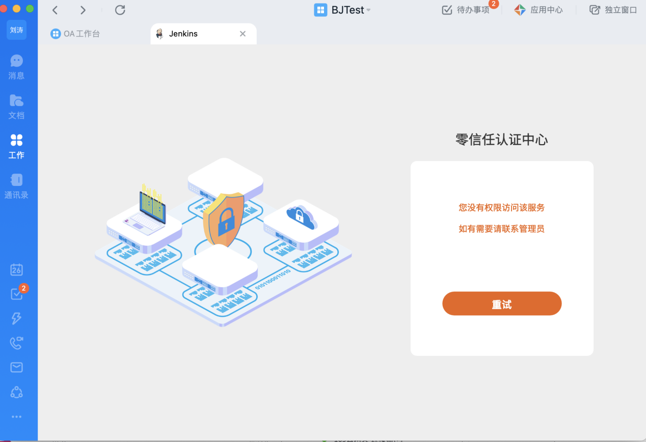 用户登录钉钉工作台,看到的下面两个应用即为受零信任保护的私有部署Web应用: