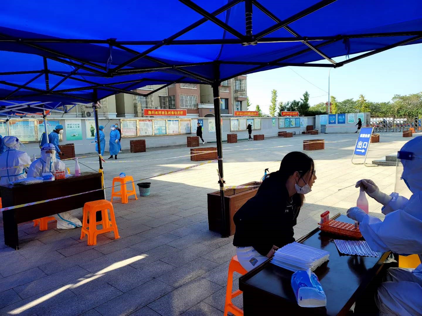 当清晨的第一缕阳光洒下大地,“大白”们早已穿上厚重的防护服奋斗在前线,深入各社区小区,站岗执勤、扫码登记、采集核酸、宣传防疫知识,并开展“扫楼”“敲门”行动,进一步提高核酸筛查质量效率,确保清人清户、应检尽检。