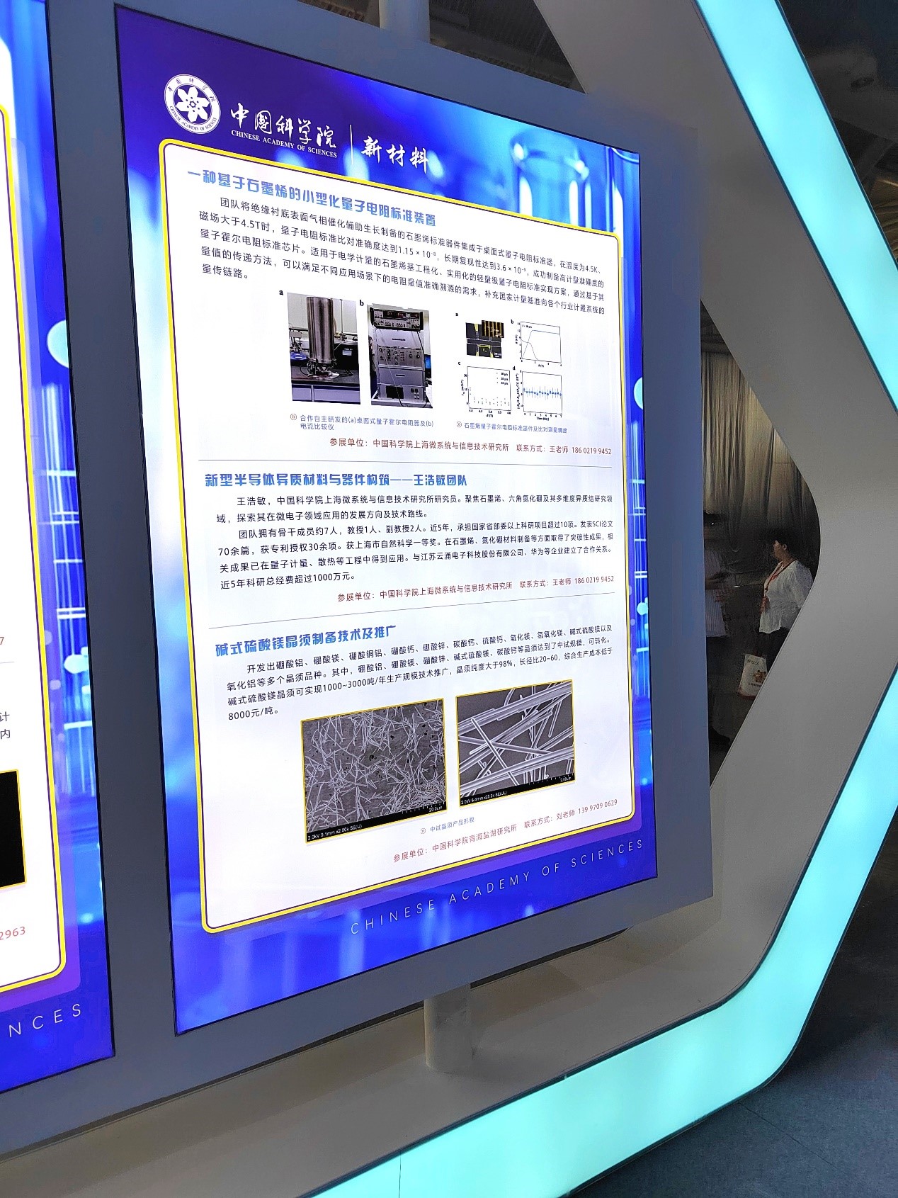 在中国科学院新材料展区中,一种小型量子电阻标准装置得到展示,这是中科院上海微系统与信息技术研究所王浩敏研究员团队的最新科研成果,bet365作为产学研合作支持单位,全程参与其中。