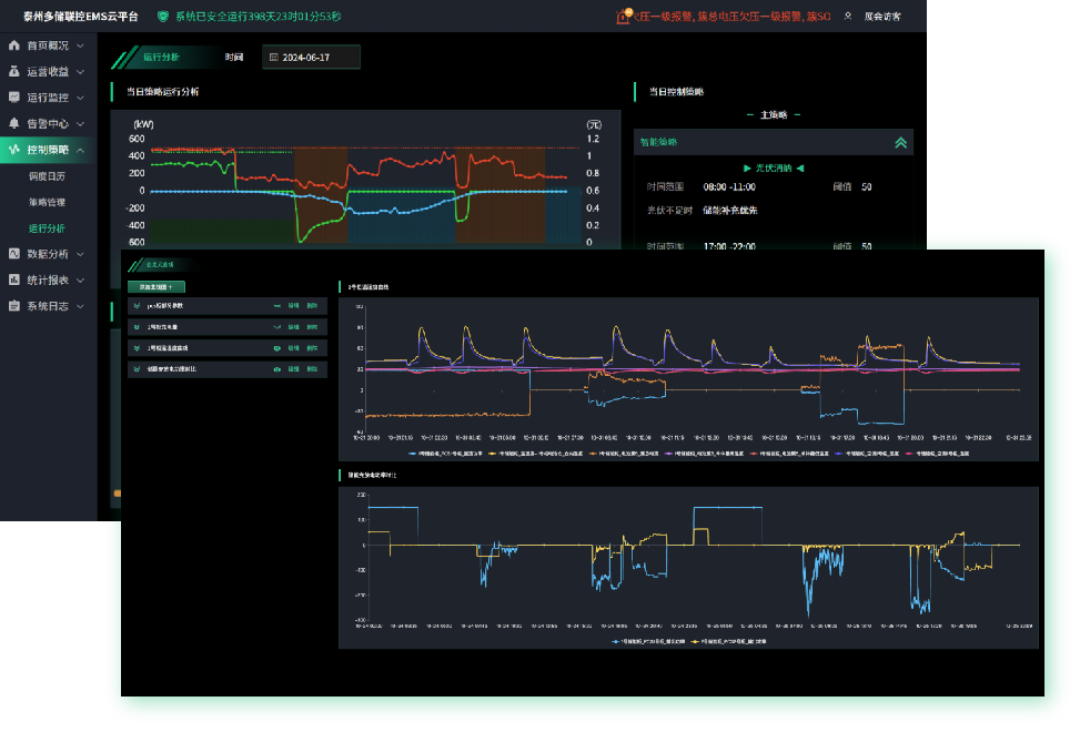 - 智能预测——系统基于梯度提升决策树算法技术,采用LightGBM模型通过实时监测光伏组件运行状态、参数和气象参数,建立精准的预测模型,实现提前预测光伏的发电量和负载功率曲线,再根据储能的配储容量,结合不同时段的电价来自动动态制定储能系统的充放电策略,保证经济效益的最大化和电网供电的持续稳定。