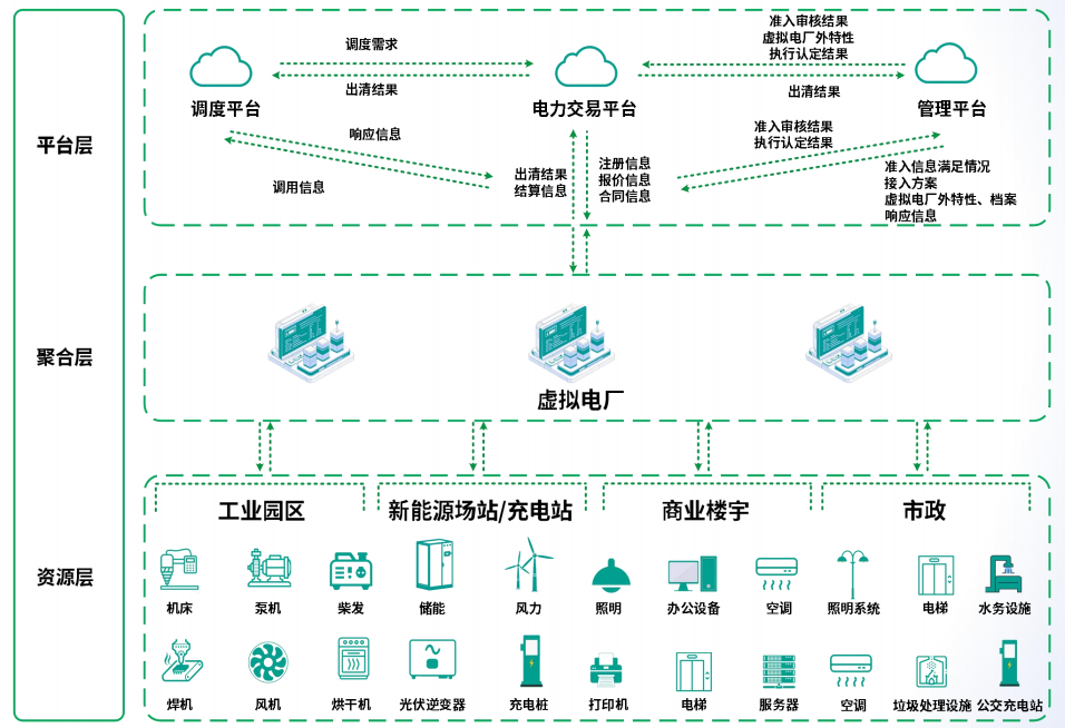 公司是泰州“首家”完成虚拟电厂注册的企业,虚拟电厂作为一种智慧能源管理系统,被称为能源产业链的“最后一公里“,其核心是将分布式的发电设备、储能系统、电动汽车、可调节负荷等资源聚合起来,通过智能算法和通信技术统一调度,使其能够像传统发电厂一样参与电力市场交易或响应电网需求,从宏观层面上,实现能源的高效利用和电网稳定运行。