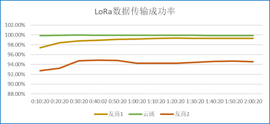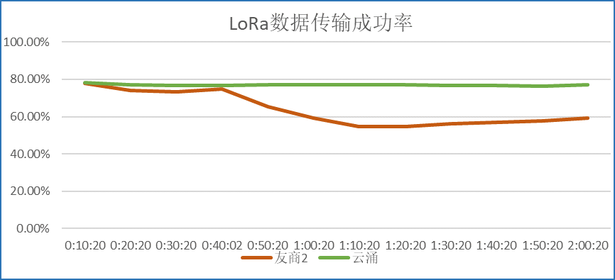 在测试环境稳定且一致的条件下,通过同样的连接方式,对比bet365LORA数传电台和另外两家友商设备的测试结果,可以得出:bet365的LoRa DTU拥有更好的抗干扰能力,而且在同频干扰的情况下,传输的成功率更高,传输的稳定性更好。