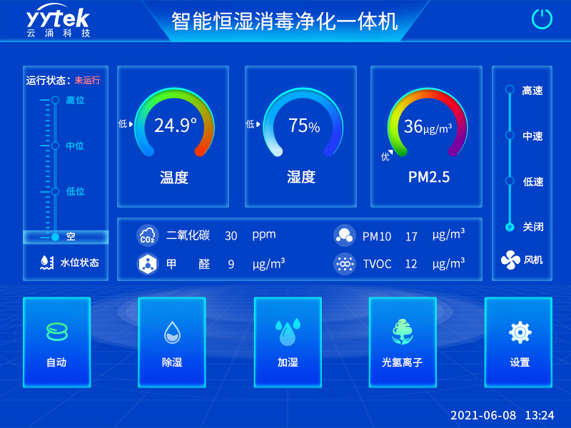 此外,bet365中文智能恒湿消毒净化一体机还具备智能化、人性化、直观化的运行方式及操作体验,运用微电脑智能控制技术,全中文液晶触控屏,功能模块化设计等,搭配远程监控系统,实时智慧感知分析预制故障;同时,设备自身配有大容量的内置双层水箱,实现双重防漏保护,结合配备的缺水、水满、溢水漏水报警系统,用户可通过人工加水和自动加水两种可选方式,使整个设备在使用过程中更加安全便捷。