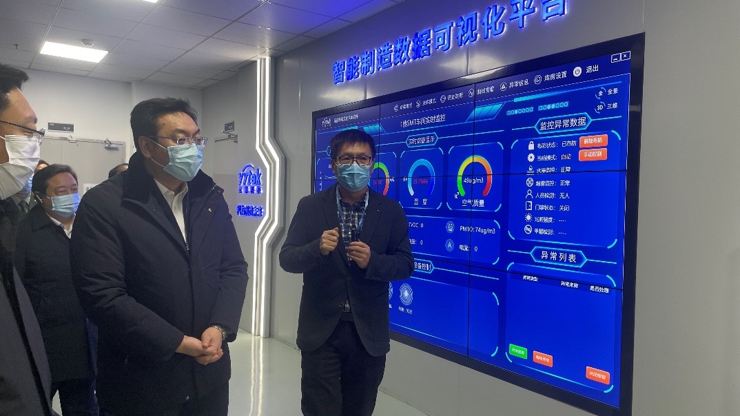 随后,朱书记等一行领导走进我司智能制造车间进行考察,高总重点介绍了公司SMT智能化生产线、“5G+AGV”搬运机器人场景应用等智能车间运行的情况。朱书记对公司的发展以及制造中心的智能化水平给予了充分的肯定,并鼓励公司借力资本市场,继续推进科技创新,实现产品的高价值、高颜值、高效率,促进bet365中文官网高质量发展。